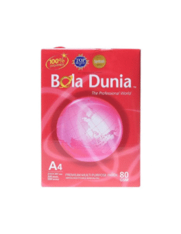 > Merk : Bola Dunia > Ukuran 210 x 297 mm > Kertas 80 GSM > NEW Isi 500 lembar/rim > Harga A4: 51.000/rim > Harga F4 : 60.000/rim